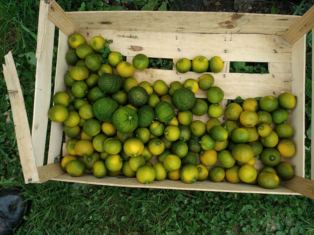 Nous sommes actuellement sur la plantation d’un verger en agroforesterie suite à la formation avec Evelyne Leterme. Nous pourrons vous proposer : des pommes, poires, nashis, cerises, pêches, figues, petits fruits ainsi que des mandarines satsuma, yuzu et oranges.